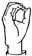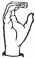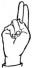 На ћирилици написано АЛЕКСАНДРА КЛИНЦОВ састоји се из 17 слова [?]. Исписано ћириличном једноручном азбуком за глувонеме: